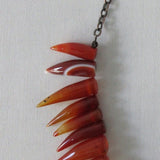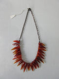 In beautiful deep orange with silver chain