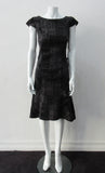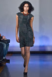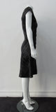 • Sided Dress. A classic look with front piece with cross-cut side panels. Charcoal grey and black satin & velvet combination with cap sleeves. CB zipper fully lined