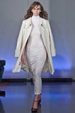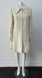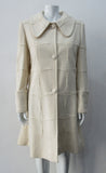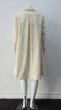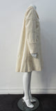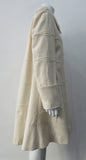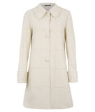 Generously cut 3/4 length coat with large rounded collar and covered buttons in off white, with a slight military feel.