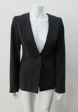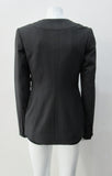 Collarless jacket featuring faux collar details with an overall tailored feel, in dark greyish brown colour.