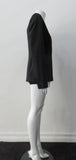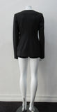 Fabric has very fine stripes. Covered buttons throughout with 1 button CF closure.