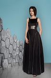 • Black Burgundian Dress long formal evening gown sleevelss black silver hexagon texture piping model image photo picture