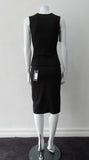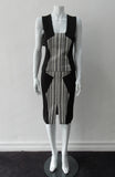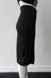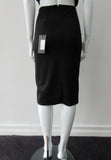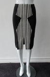 Black fitted skirt with black & white cotton stripe contrast panel.
