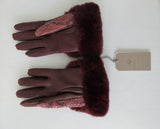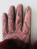 Gala Gloves Couture Bordeaux Snake Skin Gloves with Fur Trim
