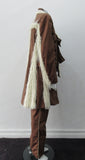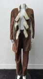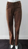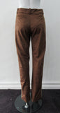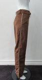 Nicely tailored medium brown faux suede trousers with beige contrast piping.
