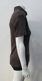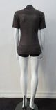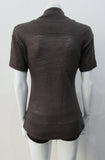 T-Shirt style with short sleeves featuring curved panel parallel to neckline and soft dropped round collar.