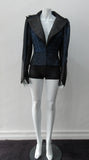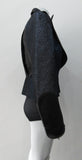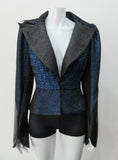 Cropped big lapelled jacket in electric deep blue combination of fabrics & textures.