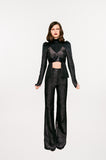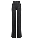 Black sparkle high waist trouser with wide legs, made with black shiny lurex, , with centre front zip closure.