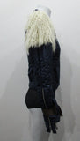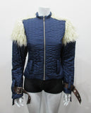 060309 Navy Padded Jacket with Faux Mongolian Fur