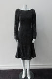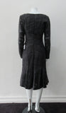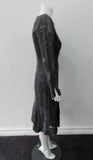 • Godet Hem Dress. Rich charcoal grey below the knee dress with lower and wider cut neckline, Dress length from CB 106cm 450g approximate weight, Size 8, 27% Nylon, 25% Wool, 20% Cotton, 15% Viscose Contrast: 77% Viscose, 13% Nylon, 10% Cotton, Lining 100% Rayon