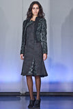 • Godet Hem Dress. Rich charcoal grey below the knee dress with lower and wider cut neckline, Dress length from CB 106cm