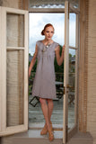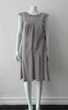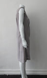 • Pleated Cross Seam Dress. Blue-Grey dress with cross seam panel details. Falls below the knee. 65% Linen, 35% Cotton. Contrast: 58% Nylon, 42% Polyester Lining: 100% Rayon Dry Clean Only. 250g approximate weight. Made in Croatia