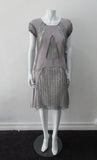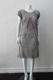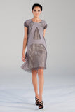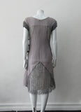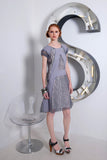 Blue-Grey A-line dress with custom built textured netting panels.