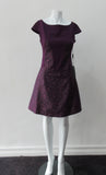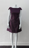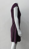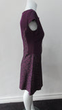 • Pointed Tip Dress. Rich purple wool dress with matching floral book print contrast panels and base. Soft cap sleeve top and CB zipper. CB Length 82cm. 550g approximate weight. 100% Wool. Contrast: 100% Cotton, Lining: 100% Rayon. Dry Clean Only, Made in England