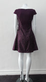 Rich purple wool dress with matching floral book print contrast panels and base.