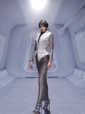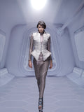 Puffy Zip Vest featuring stretch quilted clear Polyeurethane.