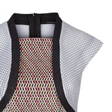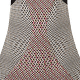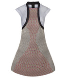 Teir Panel Dress is above knee in length, multi-coloured and a-line silhouette. There is a slight florentine neckline, and was designed with pink & beige dash fabric.