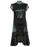 Black Shiny Dive Dress features a side and back flounce that has a diamond weave fabric, this dress falls above the knee and features cap sleeve with centre back invisible zip closure.