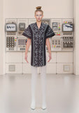 • Zip Caper open back black grey gray hexagon solid pleats silver trim model image photo picture