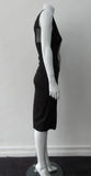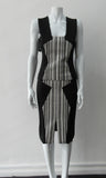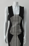 Black sleeveless jersey stretch crop top with black & white cotton stripe contrast panel.