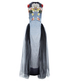 ![[Sample] Full length gown-style dress in floral & drop print. Plenty of tulling on sides and ruching around bust area. 750g approximate weight. 97% Rayon, 3% Lycra. Contrast: 97% Polyeater, 3% Elastine. Dry Clean Only. Made in England](http://www.shopandrew.com/cdn/shop/products/75f8c3d4-f637-4f15-ab62-8119359ecb42_1024x1024.jpg?v=1605616908)