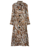 Full Length, Full Swing Brocade Coat in brown, beige, burnt orange, rust and burgundy colours. Over 4m of fabric and quite heavy! Custom covered buttons.
