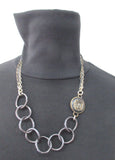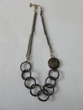 • Karyn Chopik 8 Ring & Medallion Necklace with multi-chain combo. Item Number N1166, Sterling Silver with Antiquated Brass, Copper, 54cm full length open, 28.5cm maximum length when worn, Made in Canada