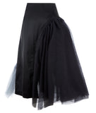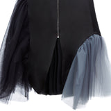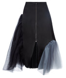 Black Satin Jacquard side zip skirt, black and grey side tulle. Can be gathered along zipper if desired.