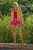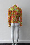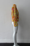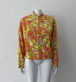 Bright loose fitting zippered jacket with 60's style yellow, pink and orange design.
