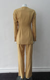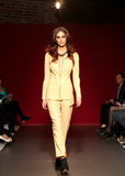 Abstract geometric cut with shoulder and hem design detail in deep maize/mustard colour.